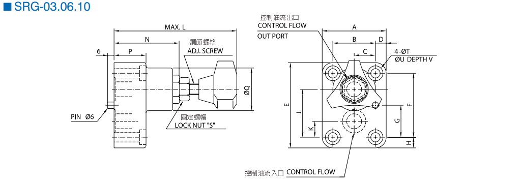 - Van SRG-10 điều chỉnh lưu lượng dầu thông qua vít chỉnh